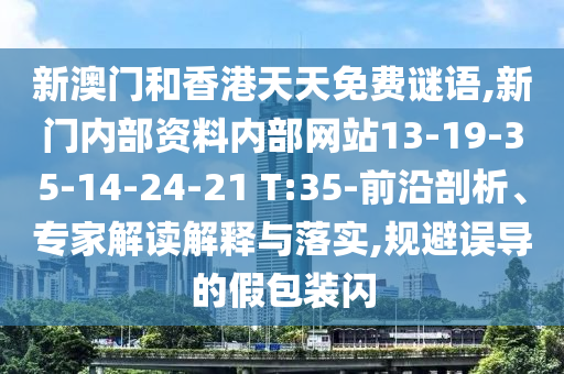 新澳門和香港天天免費謎語,新門內部資料內部網站13-19-35-14-24-21 T:35-前沿剖析、專家解讀解釋與落實,規避誤導的假包裝閃