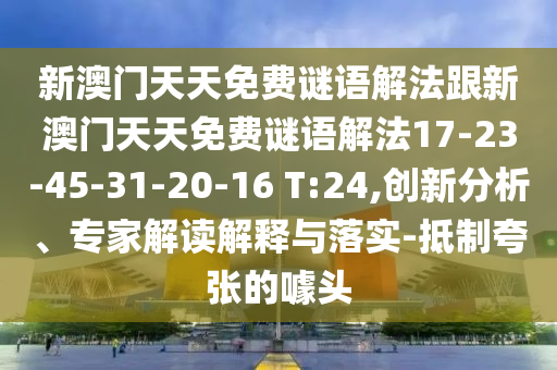 新澳門天天免費謎語解法跟新澳門天天免費謎語解法17-23-45-31-20-16 T:24,創新分析、專家解讀解釋與落實-抵制夸張的噱頭