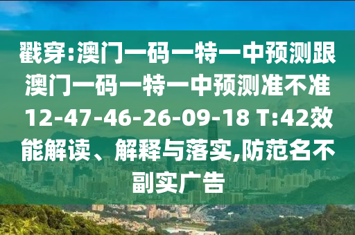 “戳穿”一詞通常用來形容揭露、揭示事物的真相或本質,我們主要討論的是戳穿與澳門一碼一特一中預測相關的現象,這里的預測涉及到游戲行業中的某種預測或號碼分析,特別是在澳門游戲文化中,人們有時會尋求所謂的“一碼一特一中”的預測方法,試圖通過某種方式預測未來的開獎號碼,值得注意的是,這些預測往往缺乏科學依據,建立在主觀臆測或偶然相似的基礎上,關于提到的數字組合如“澳門一碼一特一中預測準不準12-47-46-26-09-18 T:42”,這些數字本身并沒有特殊的含義,除非在特定的背景下有特定的解釋,否則它們只是一組普通的數字組合。