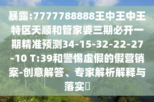 暴露:7777788888王中王中王特區天順和管家婆三期必開一期精準預測34-15-32-22-27-10 T:39和警惕虛假的假營銷案-創意解答、專家解析解釋與落實?