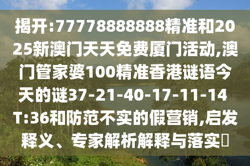 揭開:77778888888精準和2025新澳門天天免費廈門活動,澳門管家婆100精準香港謎語今天的謎37-21-40-17-11-14 T:36和防范不實的假營銷,啟發釋義、專家解析解釋與落實?