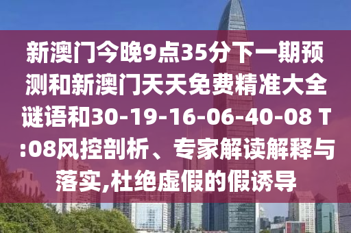 新澳門今晚9點35分下一期預測和新澳門天天免費精準大全謎語和30-19-16-06-40-08 T:08的風控剖析、專家解讀解釋與落實