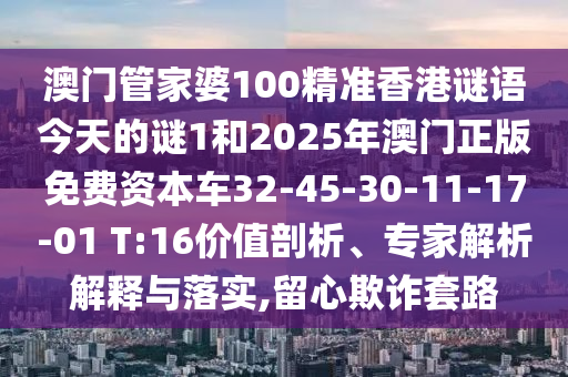 澳門管家婆100精準香港謎語今天的謎1和2025年澳門正版免費資本車32-45-30-11-17-01 T:16價值剖析、專家解析解釋與落實,留心欺詐套路