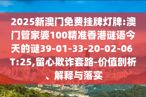 2025新澳門免費掛牌燈牌:澳門管家婆100精準香港謎語今天的謎39-01-33-20-02-06 T:25,留心欺詐套路-價值剖析、解釋與落實
