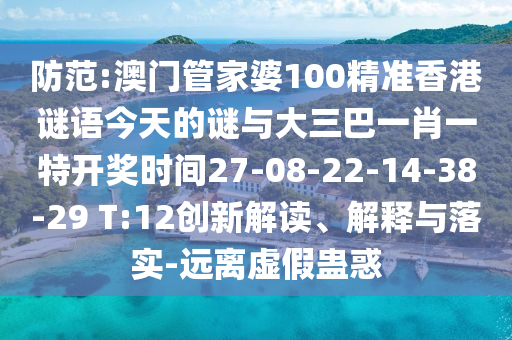 防范:澳門管家婆100精準香港謎語今天的謎與大三巴一肖一特開獎時間27-08-22-14-38-29 T:12創新解讀、解釋與落實-遠離虛假蠱惑