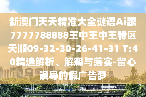 新澳門天天精準大全謎語Ai跟7777788888王中王中王特區天順09-32-30-26-41-31 T:40精選解析、解釋與落實-留心誤導的假廣告夢