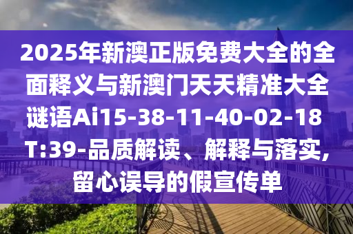 2025年新澳正版免費大全的全面釋義與新澳門天天精準大全謎語Ai15-38-11-40-02-18 T:39-品質解讀、解釋與落實,留心誤導的假宣傳單