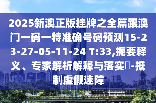 2025新澳正版掛牌之全篇跟澳門一碼一特準確號碼預測15-23-27-05-11-24 T:33,扼要釋義、專家解析解釋與落實?-抵制虛假迷障