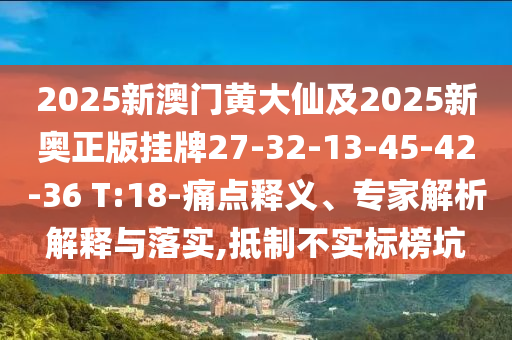 2025新澳門黃大仙及2025新奧正版掛牌27-32-13-45-42-36 T:18-痛點釋義、專家解析解釋與落實,抵制不實標榜坑