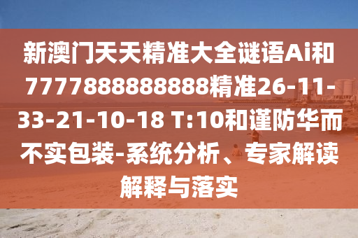新澳門天天精準大全謎語Ai和7777888888888精準26-11-33-21-10-18 T:10和謹防華而不實包裝-系統分析、專家解讀解釋與落實