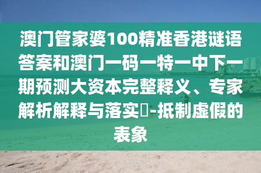 澳門管家婆100精準香港謎語答案和澳門一碼一特一中下一期預測大資本完整釋義、專家解析解釋與落實?-抵制虛假的表象