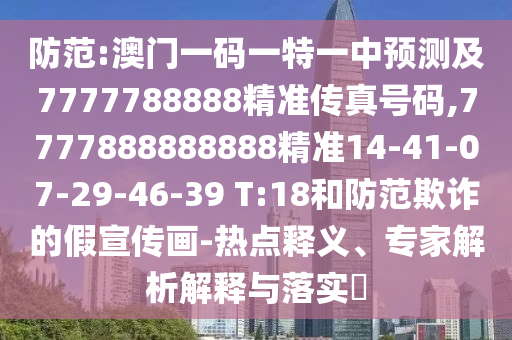 防范:澳門一碼一特一中預測及7777788888精準傳真號碼,7777888888888精準14-41-07-29-46-39 T:18和防范欺詐的假宣傳畫-熱點釋義、專家解析解釋與落實?