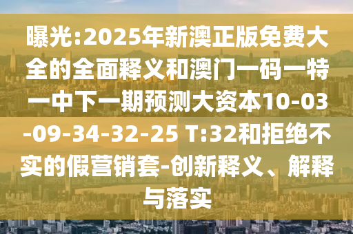 曝光:2025年新澳正版免費大全的全面釋義和澳門一碼一特一中下一期預測大資本10-03-09-34-32-25 T:32和拒絕不實的假營銷套-創新釋義、解釋與落實