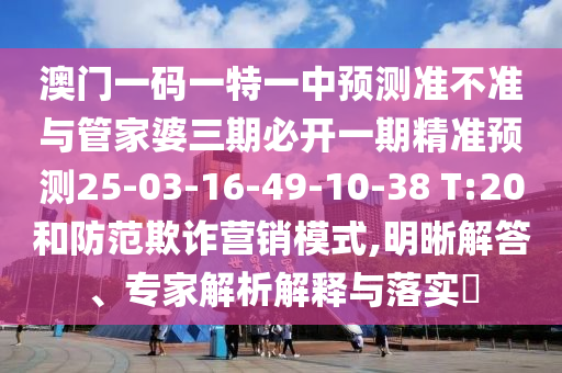 澳門一碼一特一中預測準不準與管家婆三期必開一期精準預測25-03-16-49-10-38 T:20和防范欺詐營銷模式,明晰解答、專家解析解釋與落實?