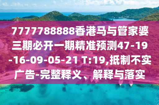 7777788888香港馬與管家婆三期必開一期精準預測47-19-16-09-05-21 T:19”的完整釋義、解釋與落實,以及抵制不實廣告的探討