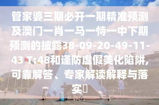 管家婆三期必開一期精準預測及澳門一肖一馬一恃一中下期預測的披露38-09-20-49-11-43 T:48和謹防虛假美化陷阱,可靠解答、專家解讀解釋與落實?