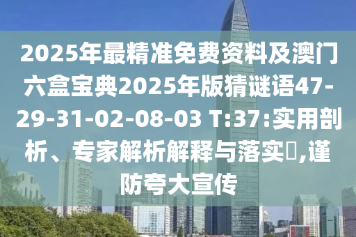 2025年最精準免費資料及澳門六盒寶典2025年版猜謎語47-29-31-02-08-03 T:37:實用剖析、專家解析解釋與落實?,謹防夸大宣傳