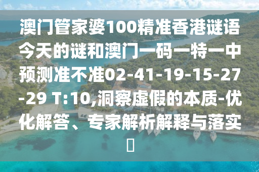 澳門管家婆100精準香港謎語今天的謎和澳門一碼一特一中預測準不準02-41-19-15-27-29 T:10,洞察虛假的本質-優化解答、專家解析解釋與落實?