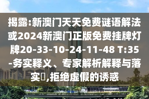 揭露:新澳門天天免費謎語解法或2024新澳門正版免費掛牌燈牌20-33-10-24-11-48 T:35-務實釋義、專家解析解釋與落實?,拒絕虛假的誘惑