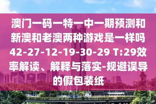 澳門一碼一特一中一期預測和新澳和老澳兩種游戲是一樣嗎42-27-12-19-30-29 T:29效率解讀、解釋與落實-規避誤導的假包裝紙