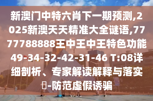 新澳門中特六肖下一期預測,2025新澳天天精準大全謎語,7777788888王中王中王特色功能49-34-32-42-31-46 T:08詳細剖析、專家解讀解釋與落實?-防范虛假誘騙