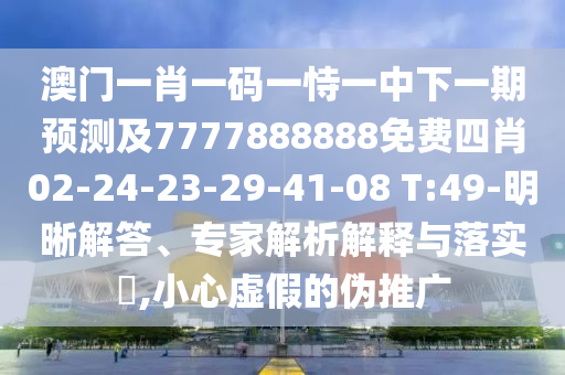 澳門一肖一碼一恃一中下一期預測及7777888888免費四肖02-24-23-29-41-08 T:49-明晰解答、專家解析解釋與落實?,小心虛假的偽推廣