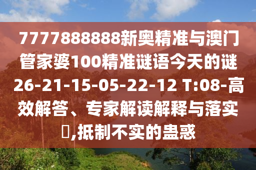 7777888888新奧精準與澳門管家婆100精準謎語今天的謎26-21-15-05-22-12 T:08-高效解答、專家解讀解釋與落實?,抵制不實的蠱惑
