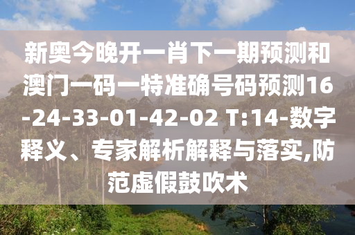 新奧今晚開一肖下一期預測和澳門一碼一特準確號碼預測16-24-33-01-42-02 T:14-數字釋義、專家解析解釋與落實,防范虛假鼓吹術