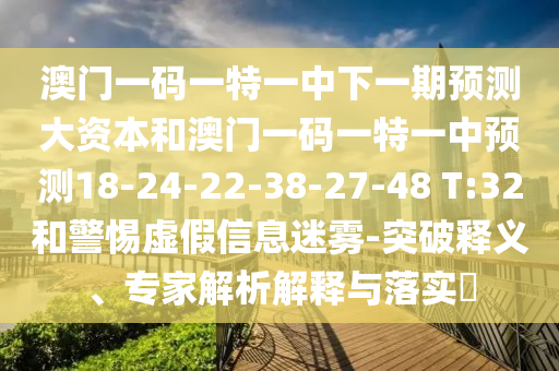 澳門一碼一特一中下一期預測大資本和澳門一碼一特一中預測18-24-22-38-27-48 T:32和警惕虛假信息迷霧-突破釋義、專家解析解釋與落實?