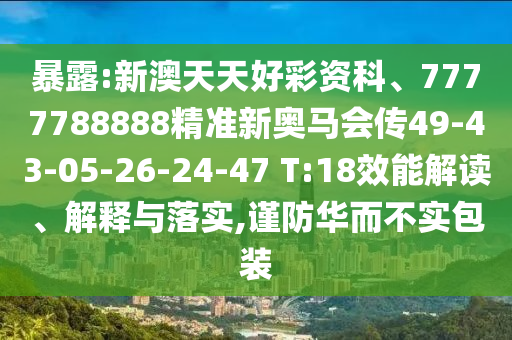 新澳天天好彩資科、7777788888精準新奧馬會傳49-43-05-26-24-47及T:18等相關關鍵詞的效能解讀、解釋與落實,以及警惕華而不實包裝的虛假宣傳
