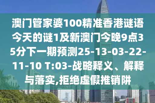 澳門管家婆100精準香港謎語今天的謎1及新澳門今晚9點35分下一期預測25-13-03-22-11-10 T:03-戰略釋義、解釋與落實,拒絕虛假推銷阱