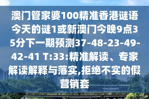 澳門管家婆100精準香港謎語今天的謎1或新澳門今晚9點35分下一期預測37-48-23-49-42-41 T:33的精準解讀、專家解讀解釋與落實