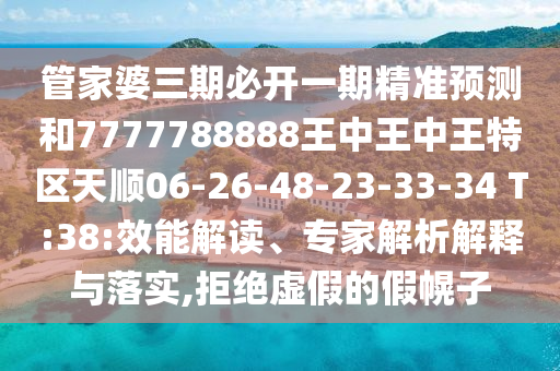 管家婆三期必開一期精準預測和7777788888王中王中王特區天順06-26-48-23-33-34 T:38:效能解讀、專家解析解釋與落實,拒絕虛假的假幌子