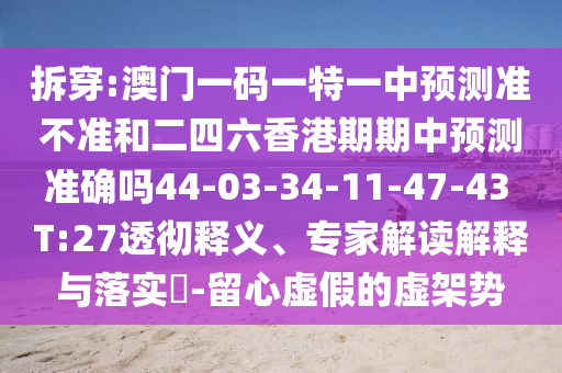 拆穿:澳門一碼一特一中預測準不準和二四六香港期期中預測準確嗎44-03-34-11-47-43 T:27透徹釋義、專家解讀解釋與落實?-留心虛假的虛架勢