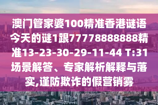 澳門管家婆100精準香港謎語今天的謎1跟77778888888精準13-23-30-29-11-44 T:31場景解答、專家解析解釋與落實,謹防欺詐的假營銷霧