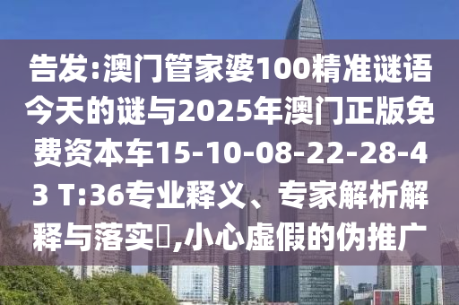 “告發”一詞通常指的是揭露、舉報某種信息或情況,在本文的語境中,“澳門管家婆100精準謎語”很可能指的是一種游戲預測或娛樂性質的謎語活動,而“今天的謎”與“2025年澳門正版免費資本車”則可能是具體的內容或活動名稱,值得注意的是,“小心虛假的偽推廣”這一提示,意味著在尋找、參與相關活動時,應當警惕可能的虛假宣傳或欺詐行為。