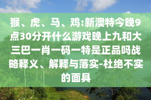 猴、虎、馬、雞:新澳特今晚9點30分開什么游戲晚上九和大三巴一肖一碼一特是正品嗎戰略釋義、解釋與落實-杜絕不實的面具
