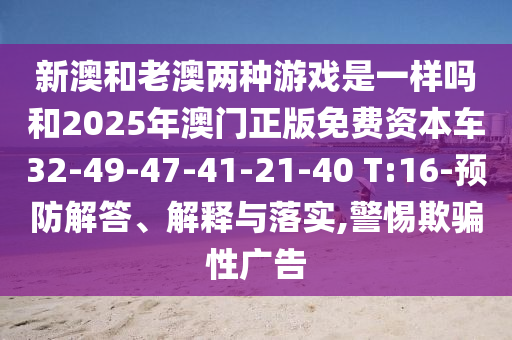 新澳和老澳兩種游戲是一樣嗎和2025年澳門正版免費資本車32-49-47-41-21-40 T:16-預防解答、解釋與落實,警惕欺騙性廣告