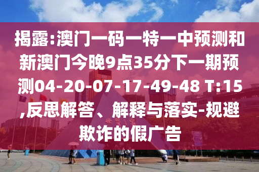 揭露:澳門一碼一特一中預測和新澳門今晚9點35分下一期預測04-20-07-17-49-48 T:15,反思解答、解釋與落實-規避欺詐的假廣告