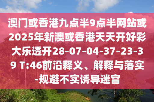 澳門或香港九點半9點半網站或2025年新澳或香港天天開好彩大樂透開28-07-04-37-23-39 T:46前沿釋義、解釋與落實-規避不實誘導迷宮