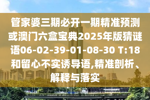 管家婆三期必開一期精準預測或澳門六盒寶典2025年版猜謎語06-02-39-01-08-30 T:18和留心不實誘導語,精準剖析、解釋與落實