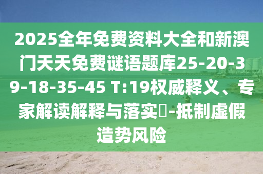 2025全年免費資料大全和新澳門天天免費謎語題庫25-20-39-18-35-45 T:19權威釋義、專家解讀解釋與落實?-抵制虛假造勢風險