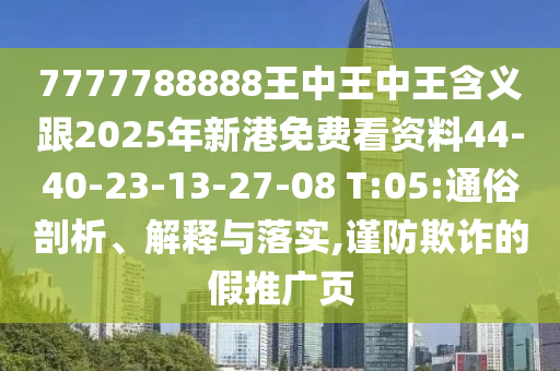 關于關鍵詞“7777788888王中王中王含義”、“2025年新港免費看資料”、“44-40-23-13-27-08”、“T:05”以及“謹防欺詐的假推廣頁”的通俗剖析、解釋與落實,下面將為您全面解讀。
