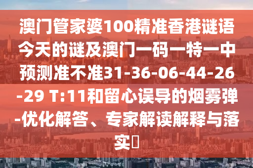 澳門管家婆100精準香港謎語今天的謎及澳門一碼一特一中預測準不準31-36-06-44-26-29 T:11和留心誤導的煙霧彈-優化解答、專家解讀解釋與落實?