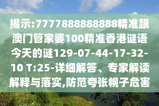 揭示:7777888888888精準跟澳門管家婆100精準香港謎語今天的謎129-07-44-17-32-10 T:25-詳細解答、專家解讀解釋與落實,防范夸張幌子危害