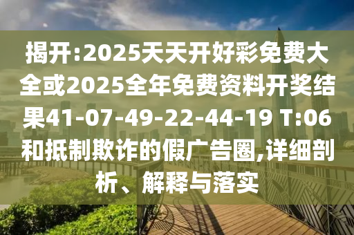 揭開:2025天天開好彩免費大全或2025全年免費資料開獎結果41-07-49-22-44-19 T:06和抵制欺詐的假廣告圈,詳細剖析、解釋與落實