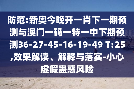 防范:新奧今晚開一肖下一期預測與澳門一碼一特一中下期預測36-27-45-16-19-49 T:25,效果解讀、解釋與落實-小心虛假蠱惑風險