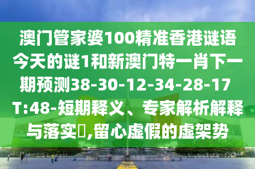 澳門管家婆100精準香港謎語今天的謎1和新澳門特一肖下一期預測38-30-12-34-28-17 T:48-短期釋義、專家解析解釋與落實?,留心虛假的虛架勢