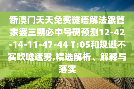 新澳門天天免費謎語解法跟管家婆三期必中號碼預測12-42-14-11-47-44 T:05和規避不實吹噓迷霧,精選解析、解釋與落實