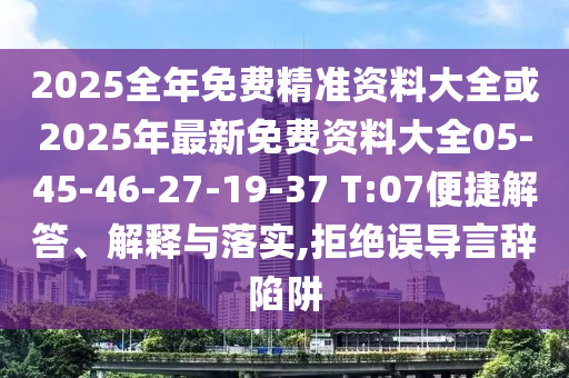 2025全年免費精準資料大全或2025年最新免費資料大全05-45-46-27-19-37 T:07便捷解答、解釋與落實,拒絕誤導言辭陷阱